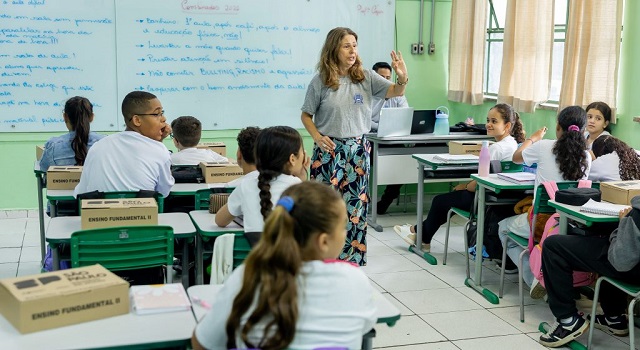 O programa do Governo de São Paulo melhora o ambiente escolar pela disciplina e organização trazida pelos militares da reserva, o que pode contribuir para o ensino e aprendizado.